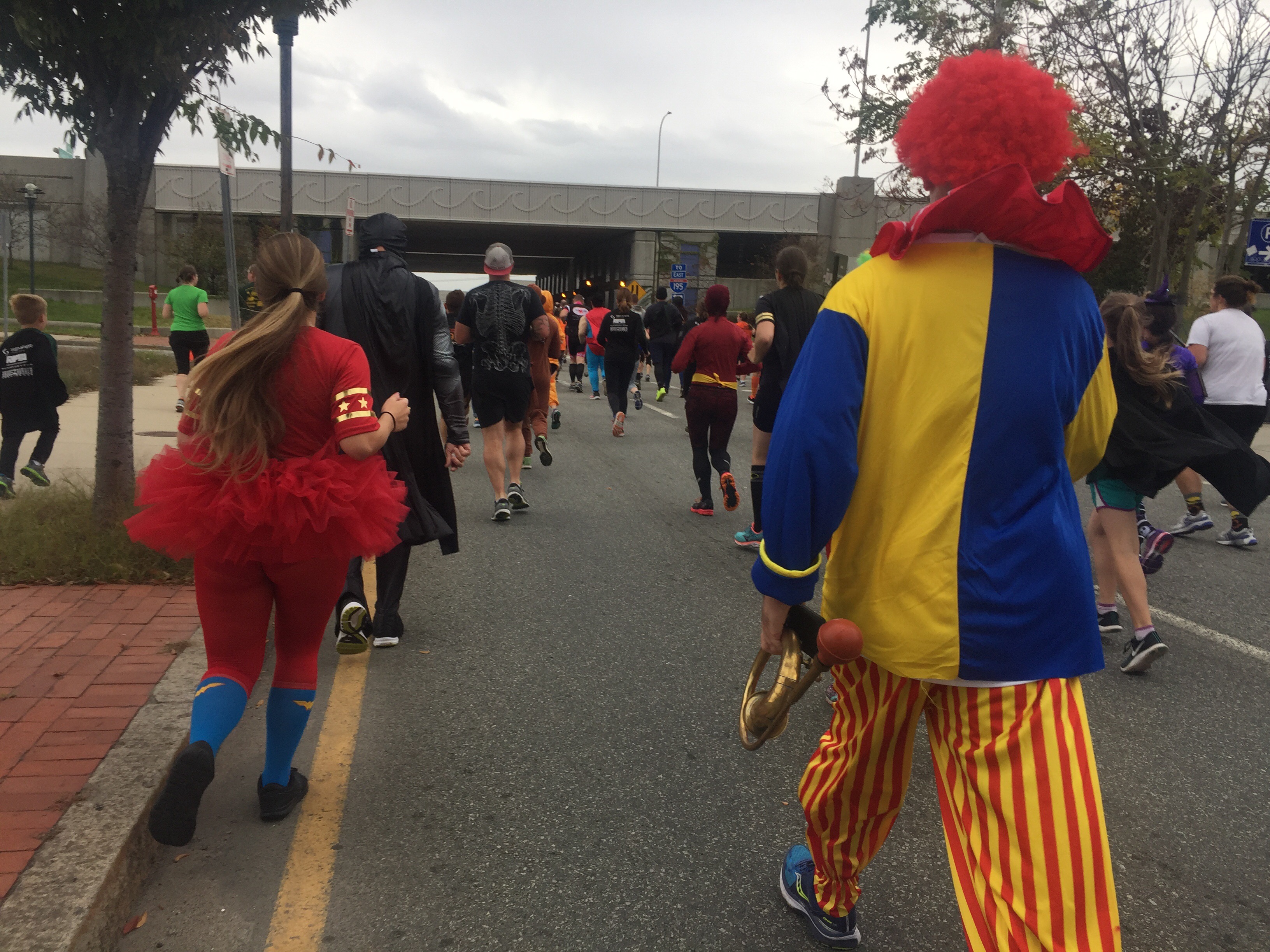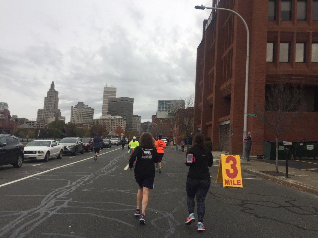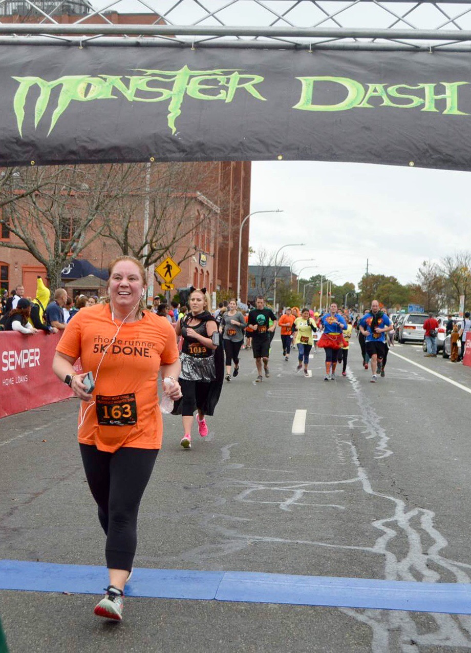 This weekend’s Monster Dash was a lot of fun! The course was set in beautiful downtown Providence. People were very much in the Halloween spirit and dressed up. It’s amazing to think that people run in elaborate costumes and face makeup, but they manage to make it look easy. The highlight of the course is getting to run through the tunnel usually only used by city buses. It was a dark and spooky with people dressed as zombies trying to scare you.