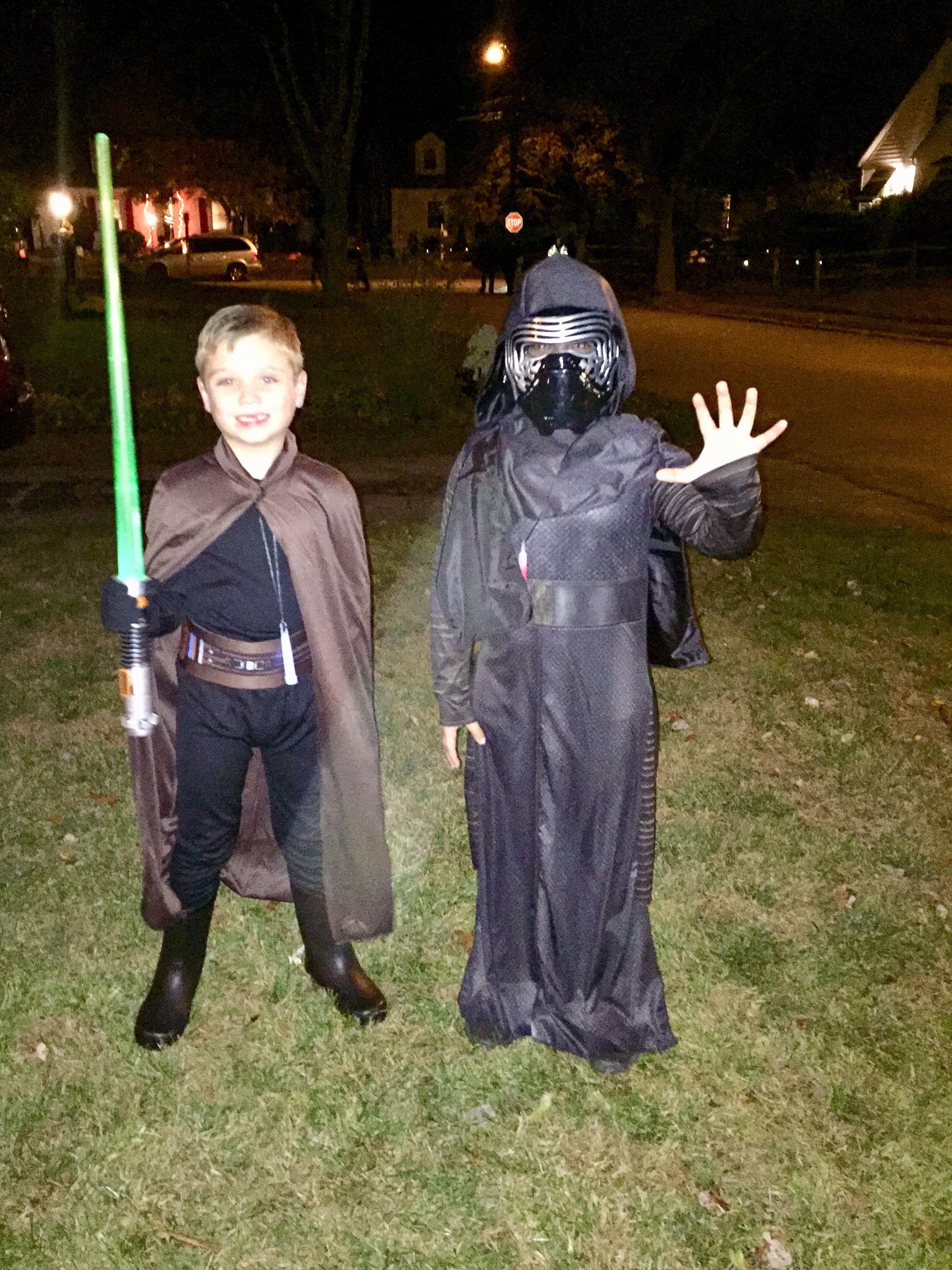 The boys played a few games, a donut eating contest and bobbing for marshmallows, and were on their way. Liam said “Thank you” at every house, even when he didn’t think I was listening. He really is a polite kid! After about an hour in, he started to get hungry and whiny. Because he ate a huge lunch, he wasn’t hungry at dinner and ignored our request to “just eat a little something.” He made the decision to power through. The kids had a blast! We are so fortunate for fantastic neighbors and a neighborhood that really gets into the Halloween spirit! Houses are decorated, and people are friendly.