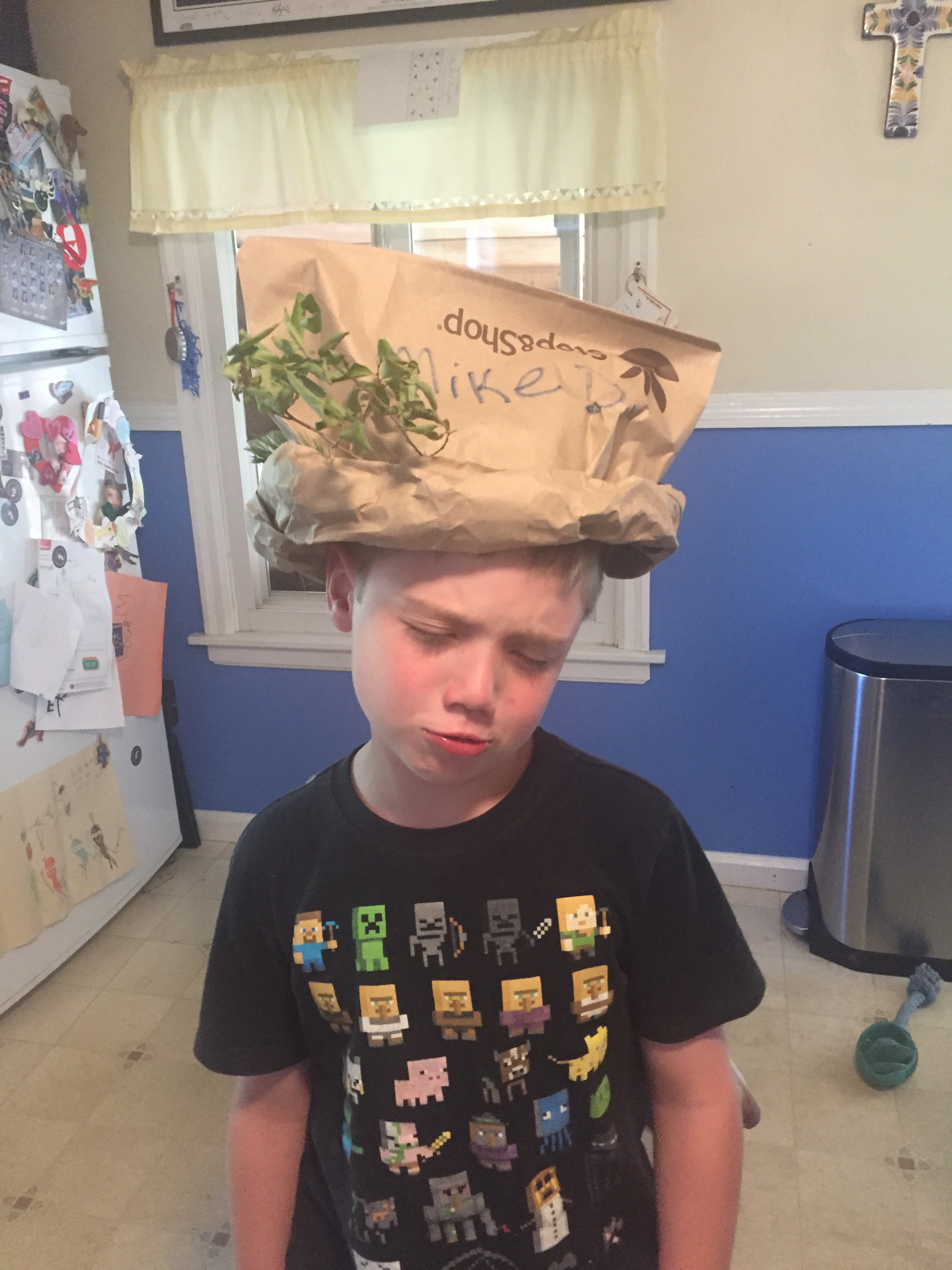 On the first day of camp, Liam came home proudly wearing a nature hat he made at camp. Across the rim read “Mike.”