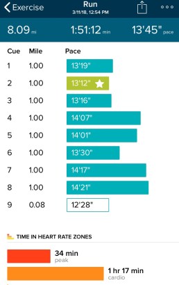 Last week, I was able to get out for three short runs and one long training run. The plan called for a nine-mile run, but I was excited to break double digits and went for ten. Two miles in, I stopped to tie my shoe, pausing my FitBit but reminding myself that there will be no pause buttons during the actual race. I resumed my run, making good time. A few minutes later, I began to wonder why I hadn’t heard the “three miles” announcement from my FitBit interrupt my audiobook. Turns out I didn’t hit the “resume” button hard enough and ran a third of a mile paused. Even with my pause, I was determined to make it to ten miles. So my ten-mile run was really 10.3 miles. Mentally, this run was not as bad as last week’s run. I’m proud that I was able to reach the next goal.