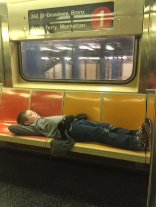 As we walked to the restaurant, Liam was able to see Times Square for the first time. On Friday afternoon, it wasn’t too busy. After lunch, we walked by Rockefeller Center on our way towards the subway to check in at our hotel. After a small, panic-inducing mix-up at the first hotel, which was not the one we where we made a reservation, we arrived at the correct hotel and settled in for a little bit. There was nothing scarier than hearing they did not have a room for us. Because there are three Holiday Inns in a small area, they said it happens pretty frequently.