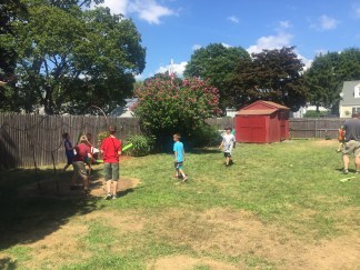 Fast forward thirteen years. We have an incredible eight-year-old boy, one we intentionally tried to have in February to time my maternity leave, allowing me to stay home for seven months. Each February since, we curse ourselves as we try to plan his birthday party. We usually have his party at various indoor facilities throughout the state. Last year his party was at McCoy Stadium. While his parties have always been fun, Liam wanted an outdoor party so we didn’t have to worry about time or how many kids he could invite. We decided to celebrate his eight and a half birthday over the summer. When he asked if he could have a Harry Potter themes party, I jumped at the chance to let him have a party in a theme I really liked (as opposed to last year’s love of Minecraft). Liam and I have been reading the illustrated books together. I love that he loves them. (I’ve stated earlier that I sometimes feel guilty for not sharing his enthusiasm for things he loves, such as Star Wars, Minecraft, and Pokemon.)