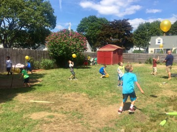 We made a Quidditch court. Mike was happy to act as our Quidditch coach. The kids had a ball playing.