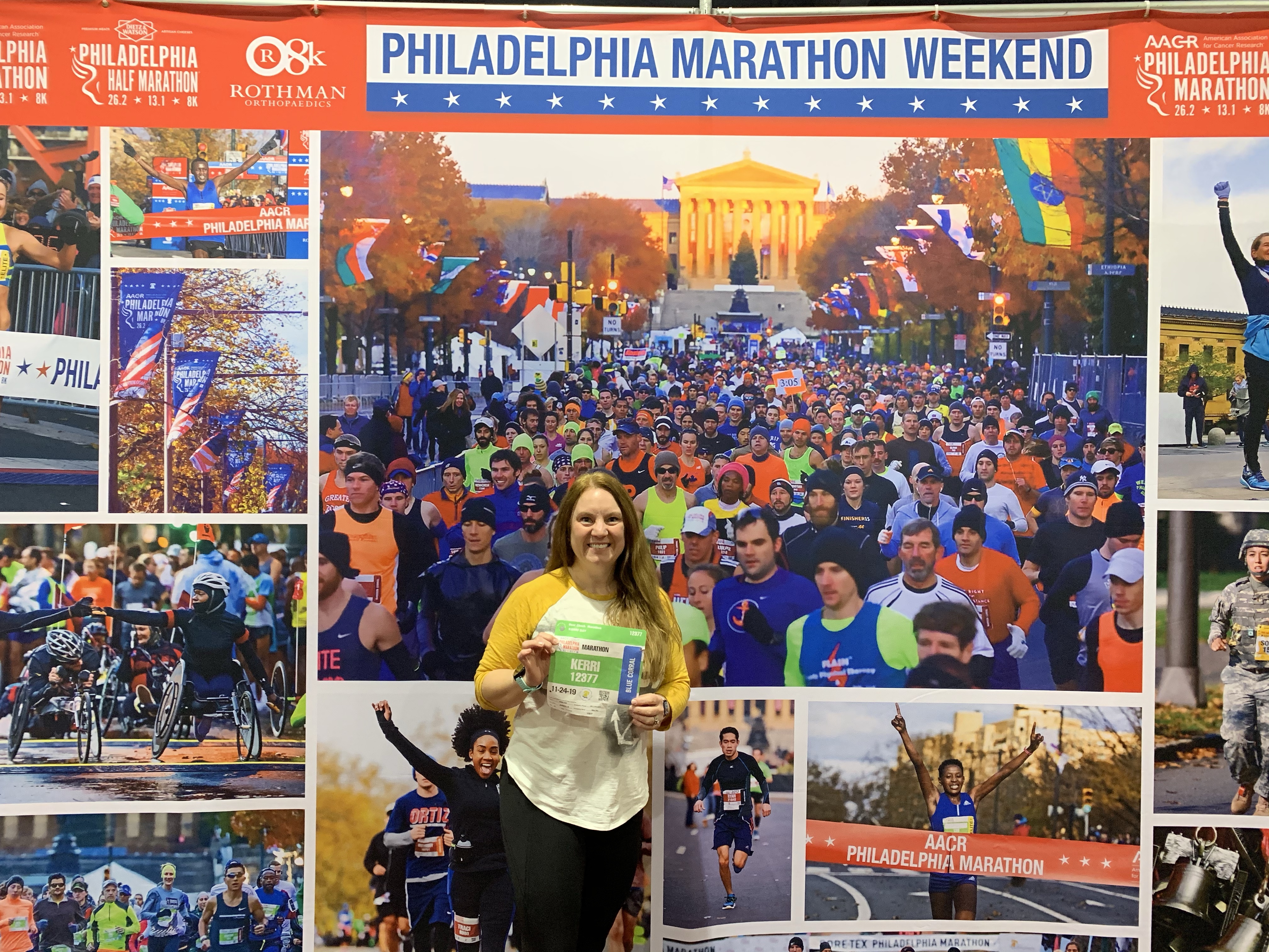 This was my only complaint about the race: since it started at 7, 6:10 should have allowed plenty of time to do my business and get to the starting line. NOPE. I didn’t finish until 7:05, leaving my discombobulated and struggling to get to the line as the third wave of runners took off. I was disorientated and panicked. Philadelphia Marathon officials, we need more porta-potties!