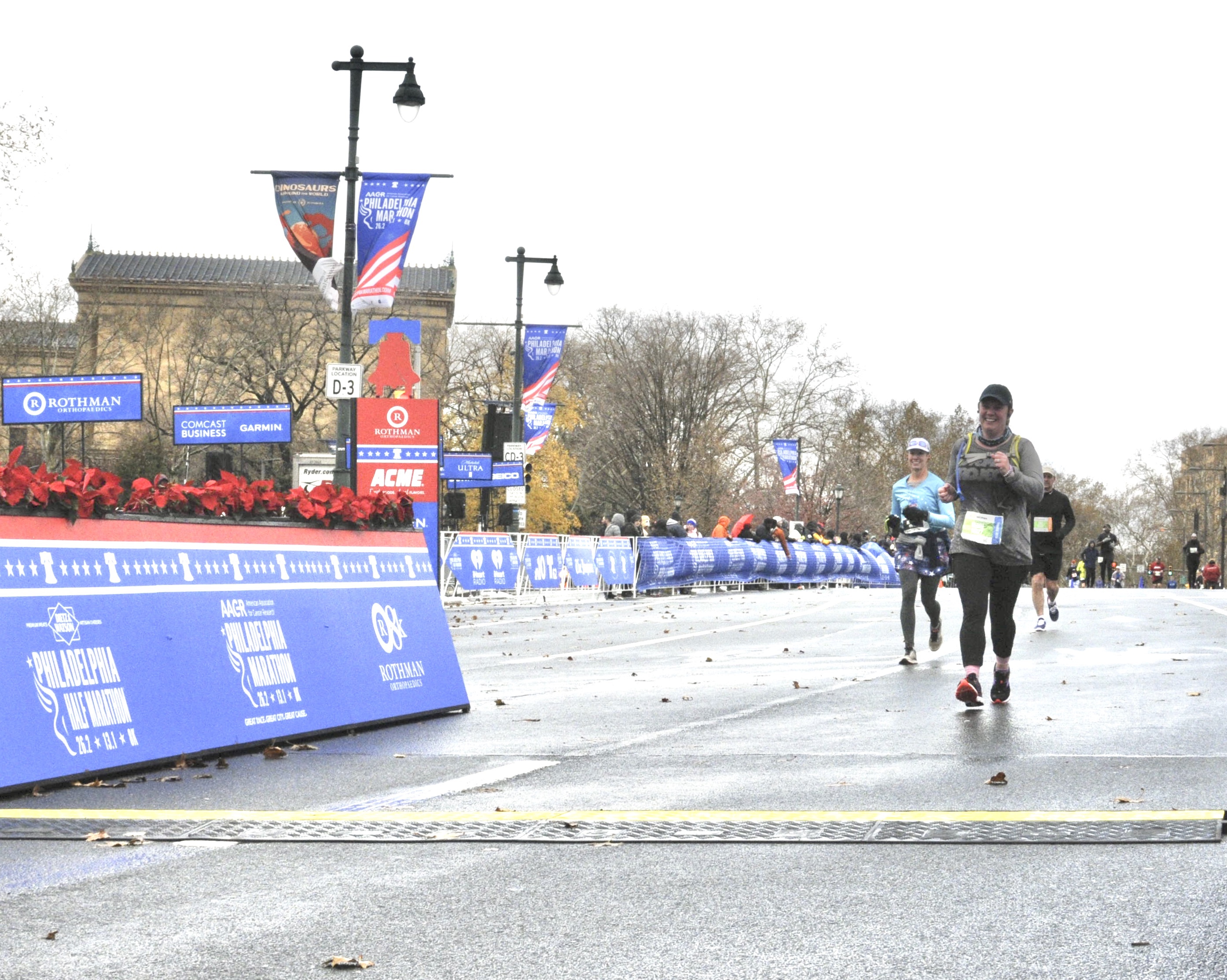 Here’s where it became a blur. When I signed up for the race, Mike and I discussed the logistics, trying to decide if we should stay one or two days. I said that I wanted to stay the second night because I wanted my moment after the race. I wanted to stay and enjoy myself after the finish; I had worked hard, dammit! However, after crossing the finish line, the temperature dropped and I wanted to get out of there! After quick hugs, I immediately wanted to go back to the hotel and take the longest shower ever! I did not walk through the race area or take my picture with the Rocky statue- nothing. I just wanted to warm up!