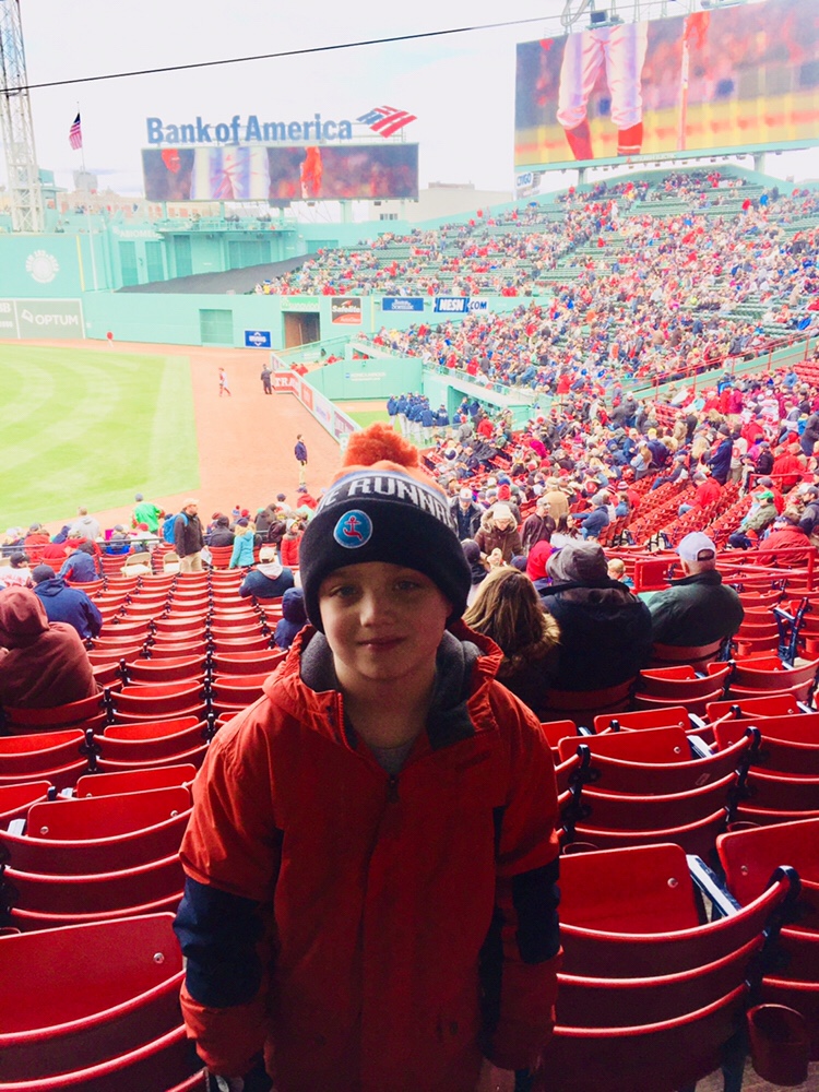 Yesterday, we went up to Fenway. It was bitterly cold, and we went up there knowing that we probably would not stay the entire game. Liam has been attending games since he was a few months old, often enjoying the State Street Pavillion seats occasionally offered to us for free. Last year, when we sat in the grandstand during the tickets I bought Mike for his birthday, Liam complained that we had to go and get our own food instead of having it brought to us by a waitress. “You mean I have to get my own hot dogs?” he exasperated. Yesterday, he realized quickly that right field seats do not come with access to an indoor viewing area. Mike and I were well into our twenties before either of us had visited Fenway; I hope Liam someday realizes how fortunate he is to have so many experiences at a young age. Even though it was sunny, by the fourth inning, my toes were icicles. The game was moving at a snail’s pace, they were down four to one, and we decided to cut our losses and head home. Even though they came back in the seventh inning, we stand behind our decision. I love that we have a tradition. Even when they lose in thirty-degree temperatures, I’m never disappointed to head to Fenway.